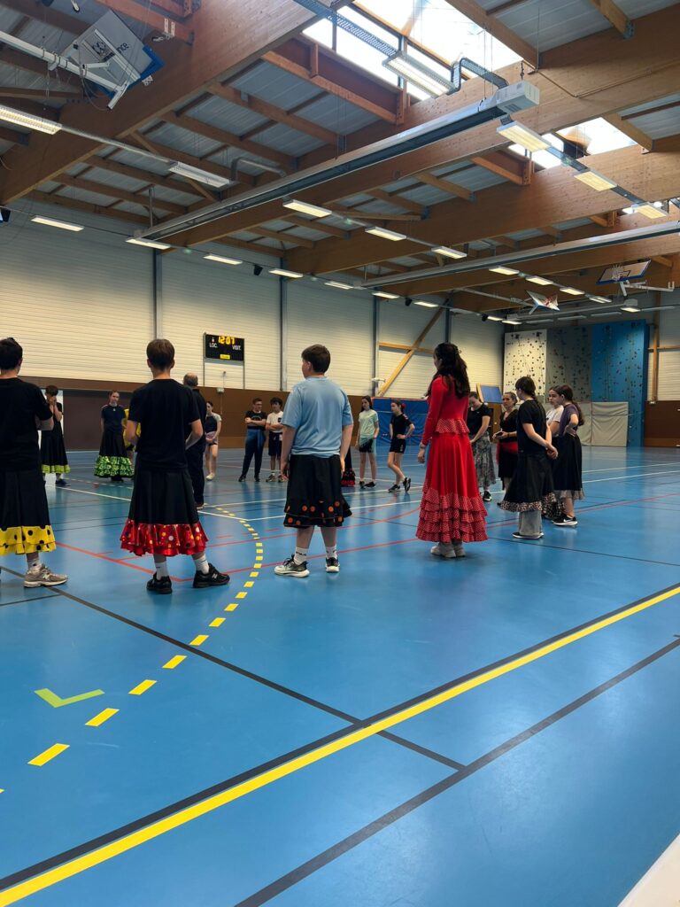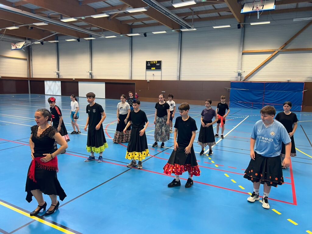 Encadrés par Felisa, Laurent et Nicole, les élèves ont d’abord participé à un atelier de danse flamenco. Guidés pas à pas, les élèves ont appris une chorégraphie, en travaillant notamment la posture, l’ancrage dans le sol et la coordination des mouvements.